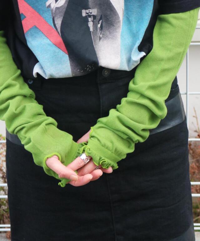すこし長めなので二の腕までつけられるし、くしゅっとつけてもOK!お好みに合わせてお使いいただけます。