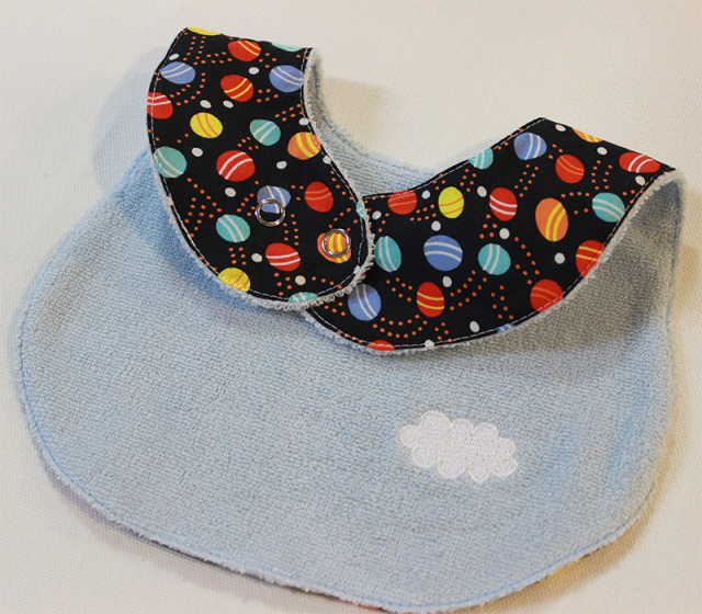 「こちらのリバーシブルタオルビブはカスタムメイドになります。」