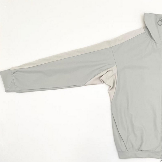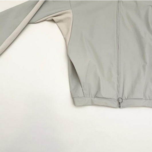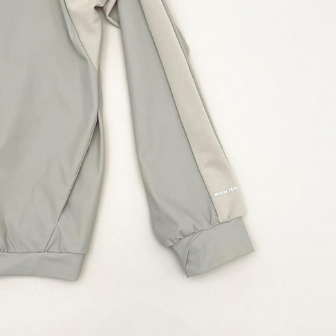 ストレッチ性、吸水速乾性のある機能素材を使用し、肩から袖に入ったラインは、小さな通気口のあるメッシュ調の素材を使用 高めの衿が、レトロな雰囲気になっています サイドにシームポケット付き