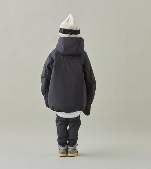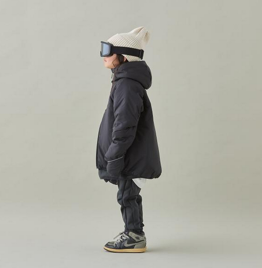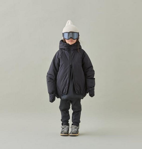 高めのフードや、絞られた裾、ミトンの仕様で、暖かさを逃がしません