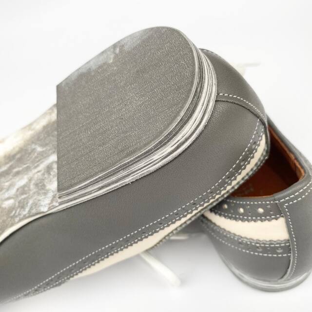ロングウィングチップ。ベロのサイドにゴムをあしらい、