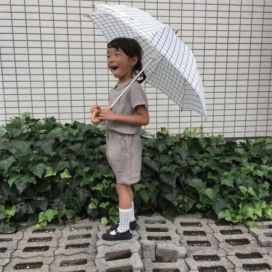 傘の骨組みにはグラスファイバーを使用し、従来の鉄骨に比べて 軽く弾力性もあり、丈夫な作りになっています。また、お子様が 手を挟まず簡単に開閉が出来るセイフティろくろ仕様になってお ります。洋傘のJIS 規格である「JUPA」基準に合格しています。