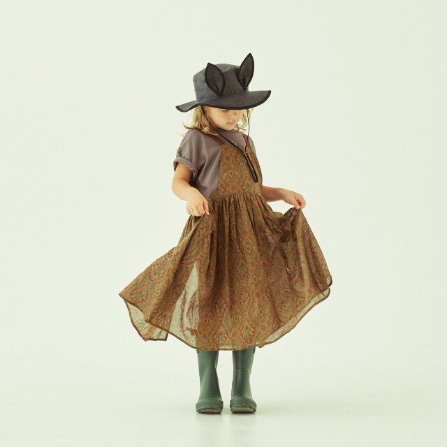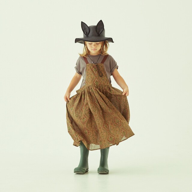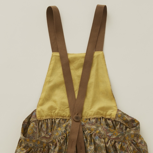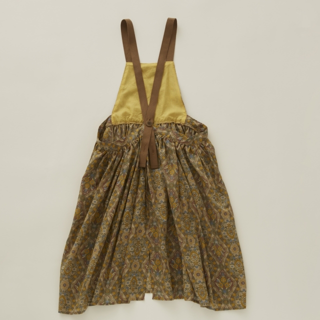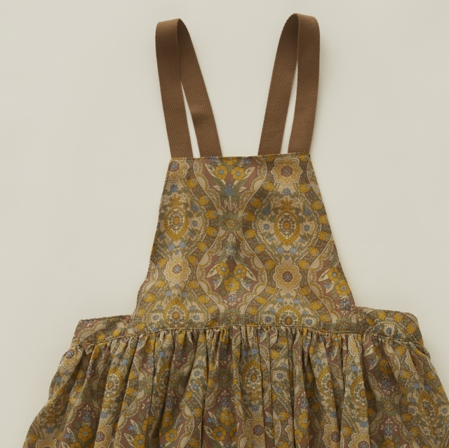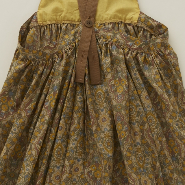 ノスタルジックな雰囲気の花柄がプリントされたとても薄手のコットン80ローンでヴィンテージのような雰囲気のアイテム、エプロンのようなピナフォアドレス。