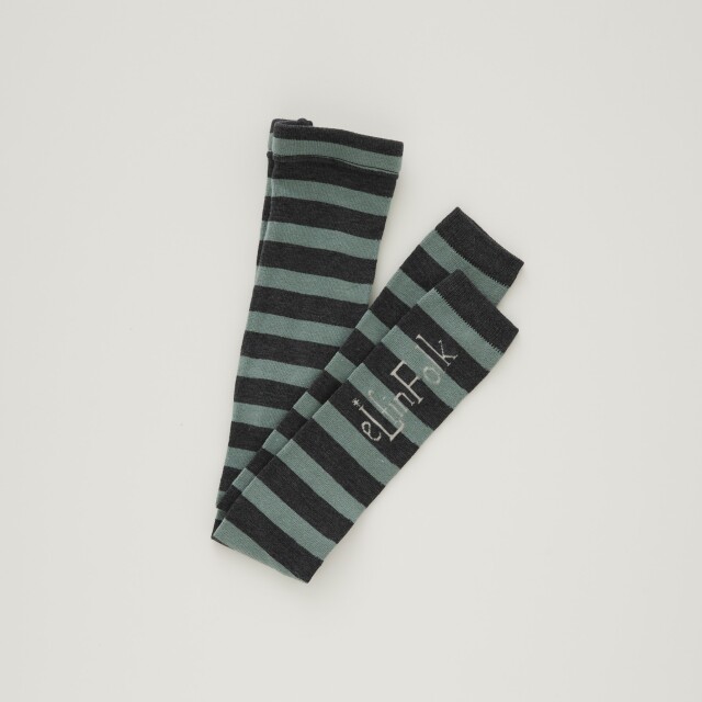字のロゴを編み上げるのは非常に難しい技術ですが、香川県にあるソックス工場のハイクオリティーな技術で伸縮性も抜群。 ストライプの濃淡の配色も美しいレギンスはワイドストライプ、ハイソックスはナローストライプ。コーディネートを足元からグレードアップさせてくれます。。