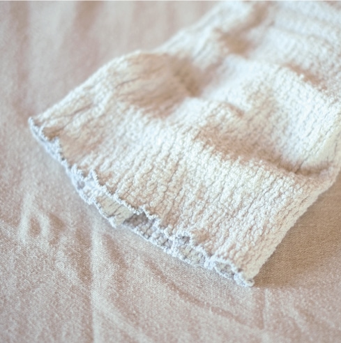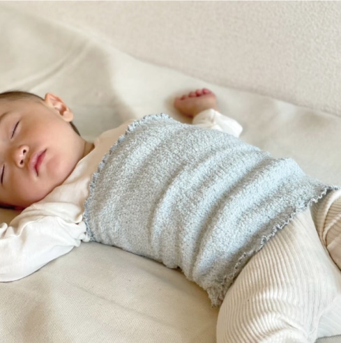 「コドモハラマキ」は先染めの糸をふんわり織り上げた、ソフトタッチなコットン素材です。 これからの季節はもちろん、夏の冷房対策としてもおすすめです。