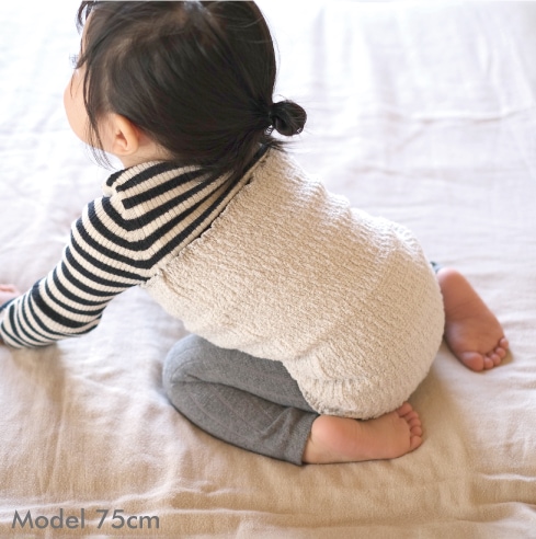 ハラマキのいいところはやはり、頭や脚元からすっぽりかぶせるだけで簡単に装着できるところ。 低月齢でおむつ替えの回数が多い赤ちゃんも、着脱せずにおむつ交換ができるのは嬉しいポイントではないでしょうか。