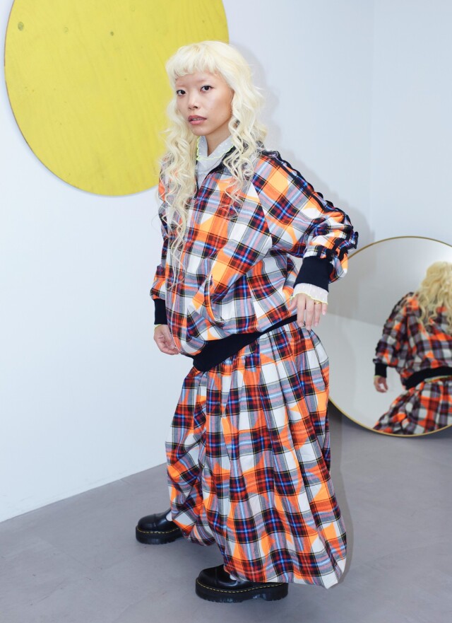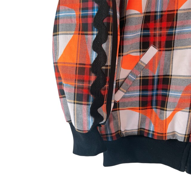 今回のテーマをデザイナーチズコさんの手描き"a piece of cake"をひろゆきさんがスキャン&切り絵にして文字を散りばめて版を作った25awオリジナルテキスタイル! タータンチェックの生地の上にプリントされ、なんとなく文字を感じるのがかっこいい!!