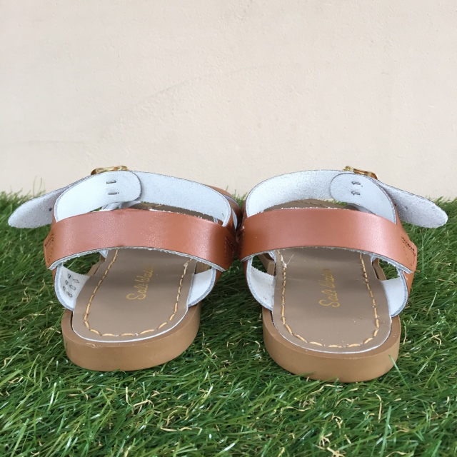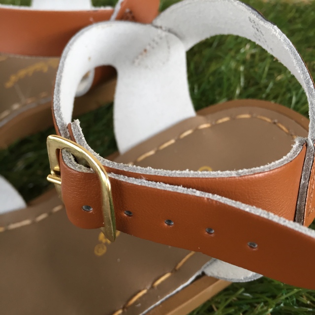 防水、防錆加工を施した特殊な革、付属品を使用しており、本革でありながら速乾性が高く、子供たちが海や川で水遊びをするのに大変適した機能となっております。アッパーの革は水に濡れることで当初より柔らかくなり、履くごとにユーザー独自の足にフィットしていくのも魅力です。