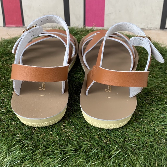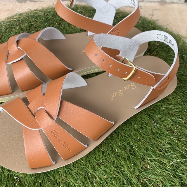 防水、防錆加工を施した特殊な革、付属品を使用しており、本革でありながら速乾性が高く、子供たちが海や川で水遊びをするのに大変適した機能となっております。アッパーの革は水に濡れることで当初より柔らかくなり、履くごとにユーザー独自の足にフィットしていくのも魅力です。