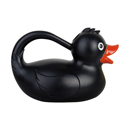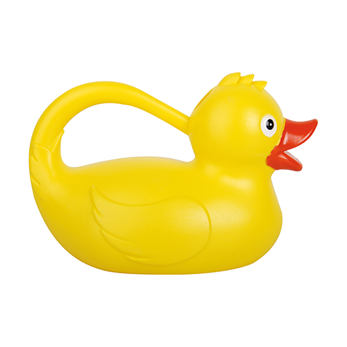 アヒルの形をしたプラスチック製のじょうろ。 くちばしの下部から簡単に植物に水やりができます。