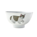 やわらかなタッチで描かれたネコたちがぐるりとあしらわれた、ほっとするようなお茶碗です。