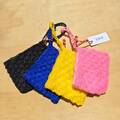ポップな色使いが目をひくポーチはタイ北部・チェンライの村人がひとつひとつ丁寧に編み上げたもの。