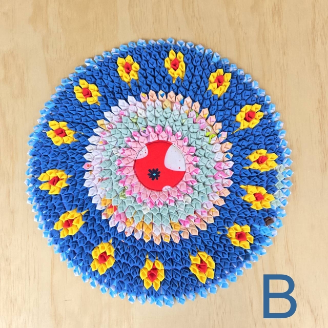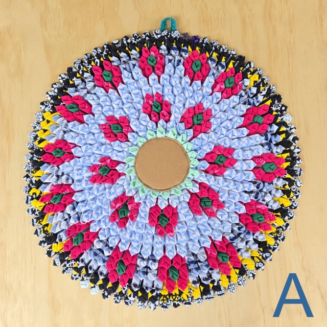 タイの北部、プレーで生み出されるリサイクル(廃材)生地を用いた太陽をイメージさせるマット。