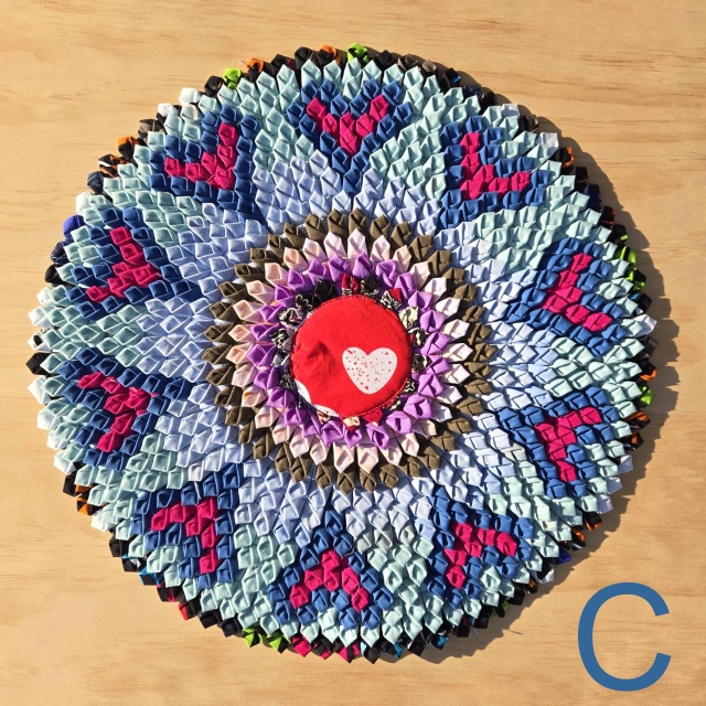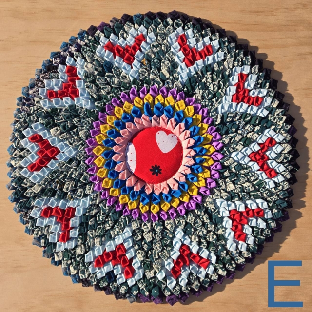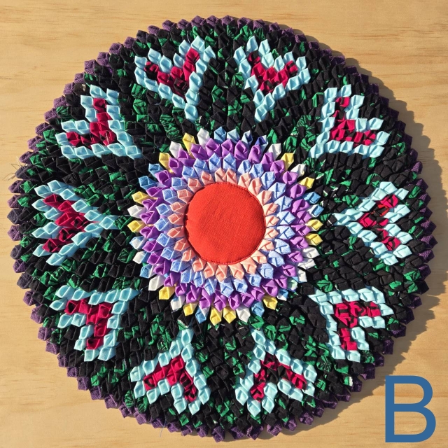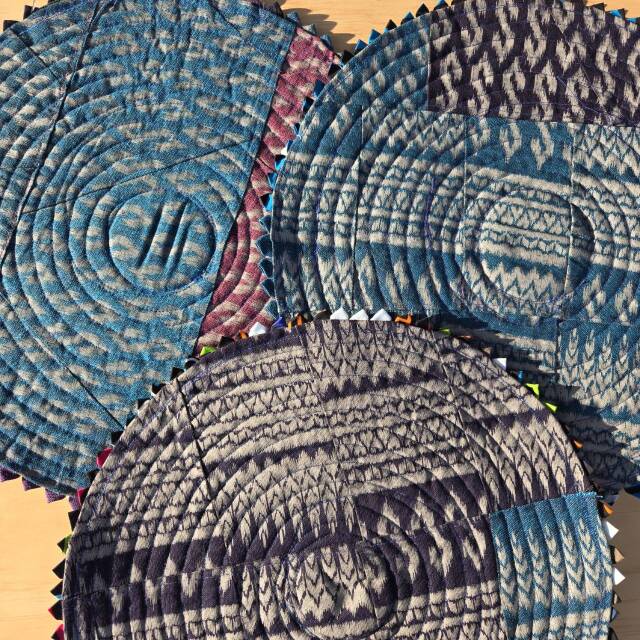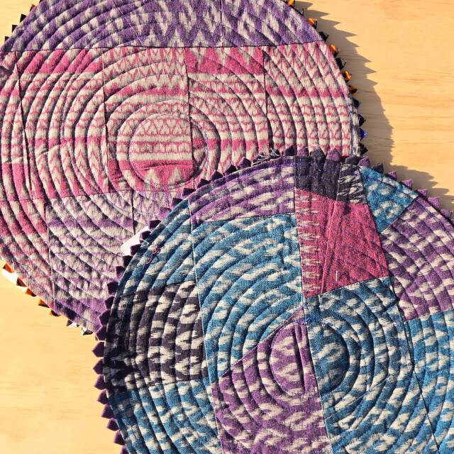 タイの北部、プレーで生み出されるリサイクル(廃材)生地を用いた太陽をイメージさせるマット。
